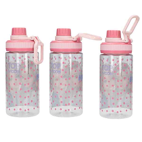 - botella transparente con motivo de modelos de TOPModel y lunares