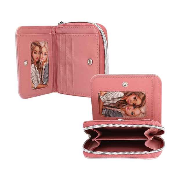 Precioso y práctico: Este monedero de TOPModel en delicado rosa palo con lunares grises y mucha purpurina lleva la cara delantera adornada con un motivo de dos modelos estilosas. Además, tiene compartimentos para billetes, tarjetas y tarjetita con el nombre, así como un compartimento con cremallera para las monedas. Material principal: poliéster 100 por 100.