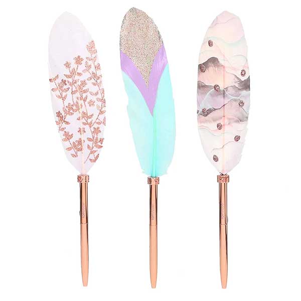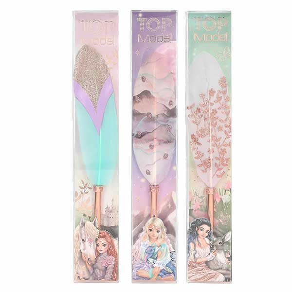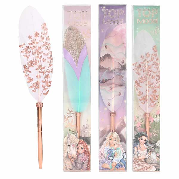- Escribir de la forma más bonita imaginable es posible gracias a los bolígrafos pluma de TOPModel. El cuerpo de los bolígrafos es color oro rosa y llevan impreso un logo pequeño. Disponibles tres diseños: lila con purpurina oro rosa, verde salvia y lila con punta oro rosa y marmoleado en tonos pastel con lunares oro rosa. Escriben en negro y la mina (SCHNEIDER 56 DIN 166554 D1) es recambiable.