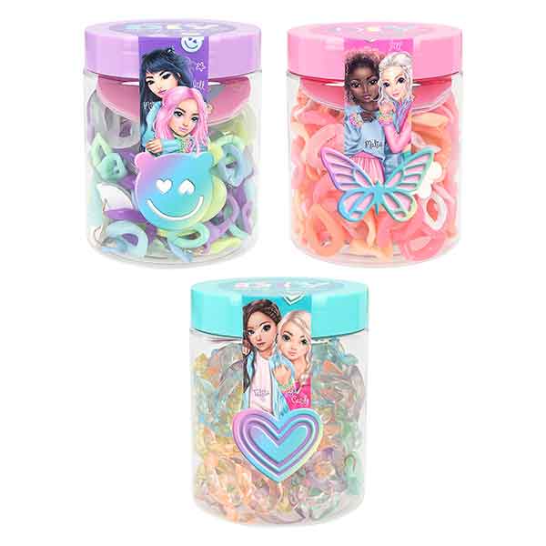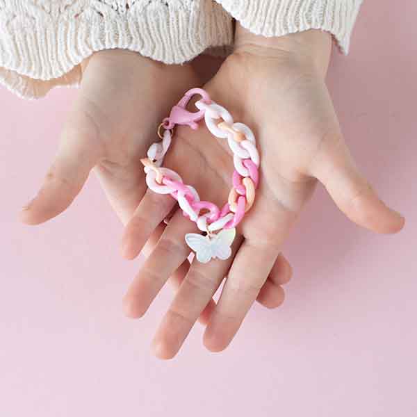 - ¡Clic, clic, chic! Simplemente enlazando los eslabones multicolor de este set se pueden crear piezas de bisutería tendencia. Cada set contiene eslabones de dos tamaños (100 elementos grandes y 100 pequeños), 6 cierres de mosquetón, 4 colgantes monísimos e instrucciones HTM ilustradas. Disponibles 3 diseños distintos: lila con colgantes de osito, turquesa con colgantes de corazón y rosa con colgantes de mariposa.