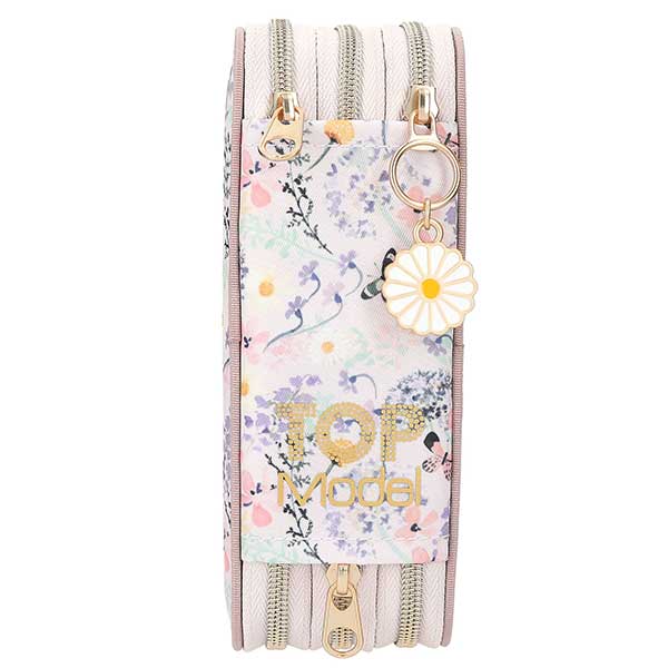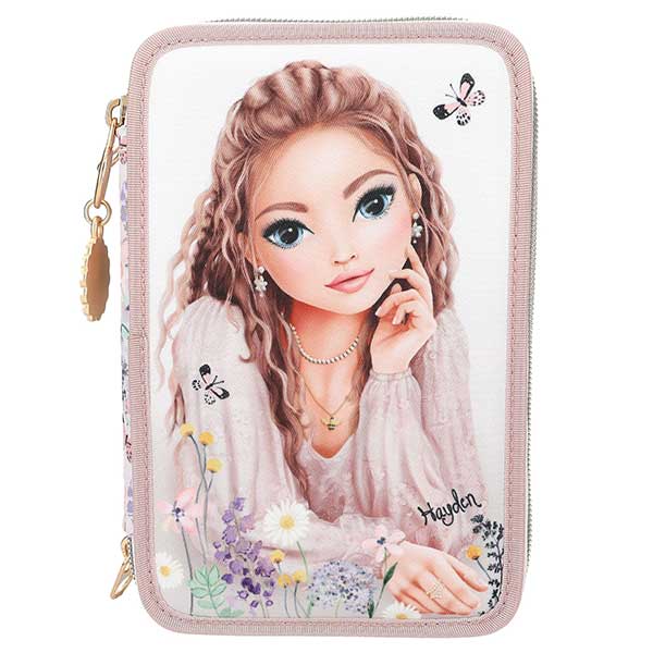 - ¡Fantásticamente floral! El estuche de 3 pisos de TOPModel lleva un romántico motivo de una modelo rodeada de delicadas flores y mariposas. Plus monísimo: el colgante de flor en la cremallera. Los tres compartimentos separados vienen completamente llenos con 18 lápices de colores, 18 rotuladores, 2 lápices, sacapuntas, goma de borrar, regla, tijeras y pegamento en barra; el estuche incluso va provisto de un bolsillito interior con cierre de velcro. Material: poliéster 100 por 100.