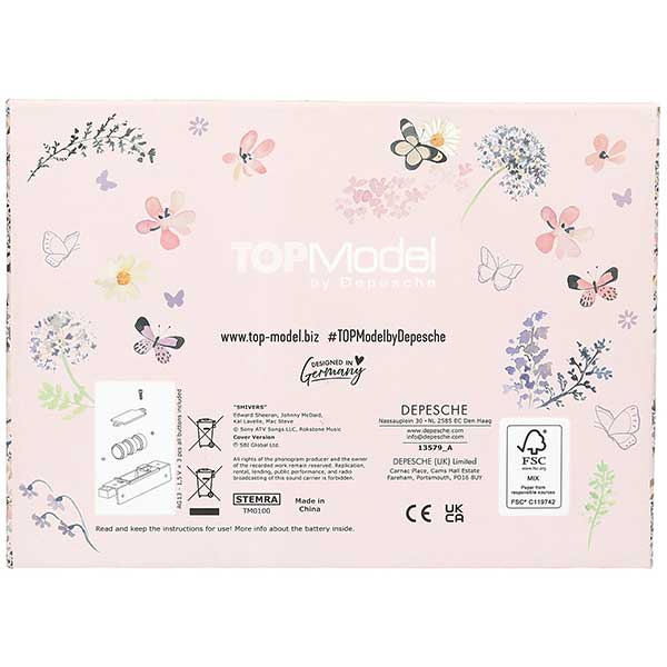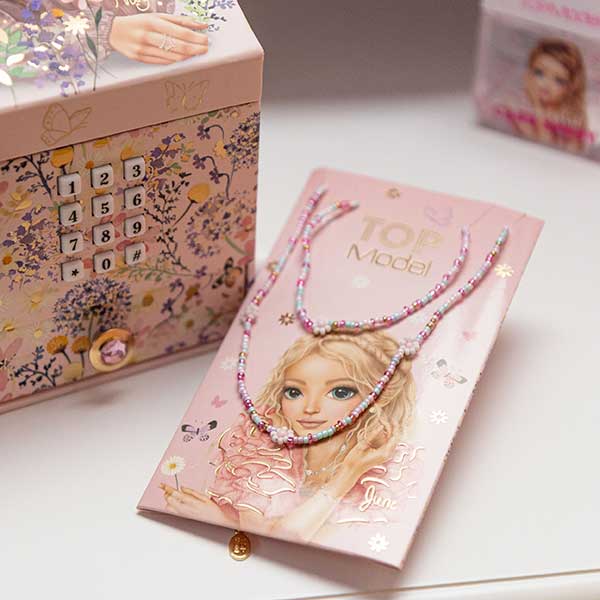- Para pequeños tesoros y secretos. El candado de este joyerito rosa pálido de TOPModel solo se puede desbloquear introduciendo correctamente el código (personalizable y modificable). Al abrirse suena durante 20 segundos aprox. la conocida canción Shivers. El joyero lleva en su interior un espejo y una bandeja extraíble subdividida en tres compartimentos. En la parte delantera también cuenta con dos cajoncitos con tirador con forma de diamante. Tanto el exterior como el interior de este joyero están completamente decorados con diseño floral y la tapa abatible está adornada además con dos modelos rodeadas de delicadas mariposas. Pilas recambiables incluidas.