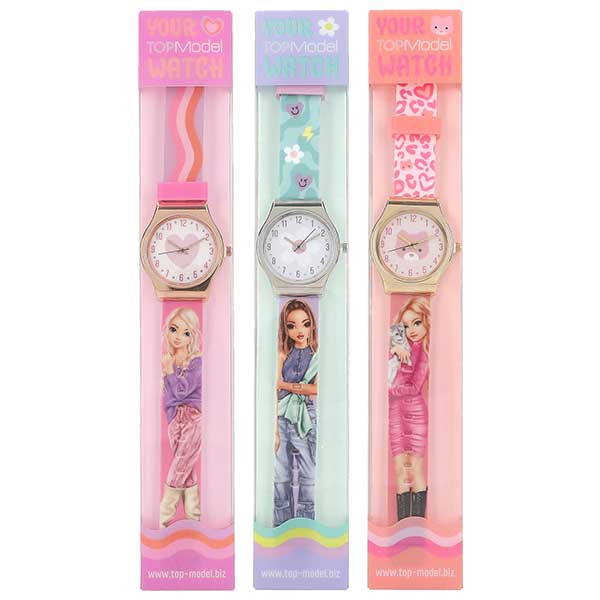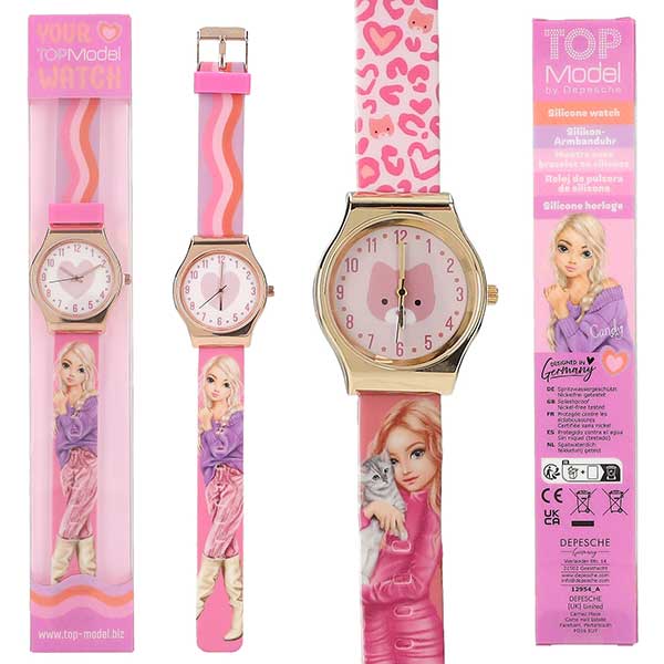 - It’s TOPModel time! Los nuevos relojes de pulsera de silicona están disponibles en tres diseños maravillosos: con mucho rosa, caja oro rosa, esfera decorada con un corazón y correa con modelos y ondas; en turquesa con caja plateada, esfera decorada con una flor y correa con flores y modelo; en rosa con caja dorada, esfera decorada con un gato y correa con corazoncitos y modelo. Los relojes son antisalpicaduras, están libres de níquel e incluyen una pila de botón recambiable (SR626SW). Se recomienda que el cambio de pila sea realizado por un profesional. Los relojes se acompañan de instrucciones de uso.