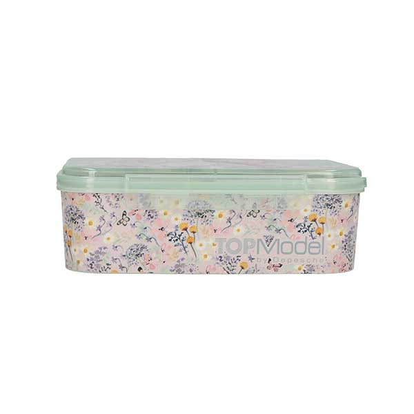 - Flores de filigrana, delicadas mariposas y modelos de TOPModel bellísimas: La tapa integral abatible y los laterales de esta fiambrera verde salvia están decorados con un elaborado print. Con tres compartimentos de tamaños distintos para almacenar alimentos que calmarán el apetito fuera de casa. Se recomienda lavado a mano para proteger la decoración. No apta para lavavajillas ni microondas.