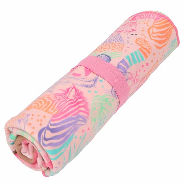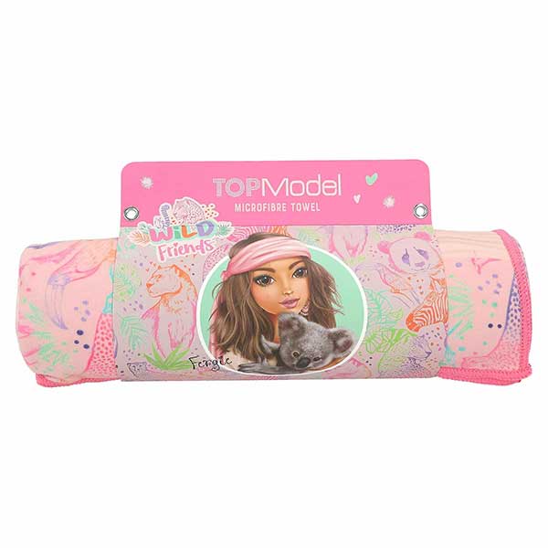 - Para la piscina o para viajar: Con la toalla de TOPModel WILD de microfibra el buen humor estará siempre al alcance de la mano. Predomina el rosa suave con estampado allover de animales en colores alegres y una modelo guapísima con un koala en brazos.Esta toalla es de secado rápido, ocupa poco volumen al doblarla y está provista de una práctica goma para sujetarla. Material: poliéster 85 por 100, poliamida 15 por 100.